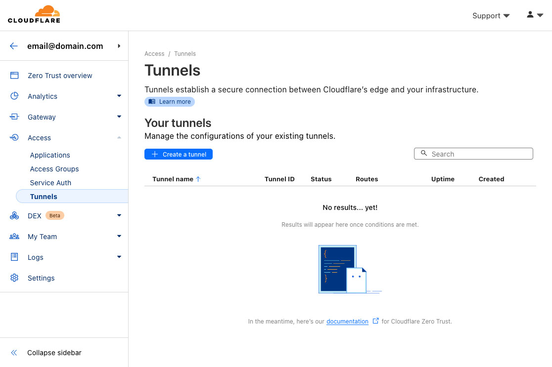 Before we can set up Cloudflare Tunnels, we need to generate an authentication token. This token will be used to authenticate your Cloudflare Tunnel and associate it with your Cloudflare account.